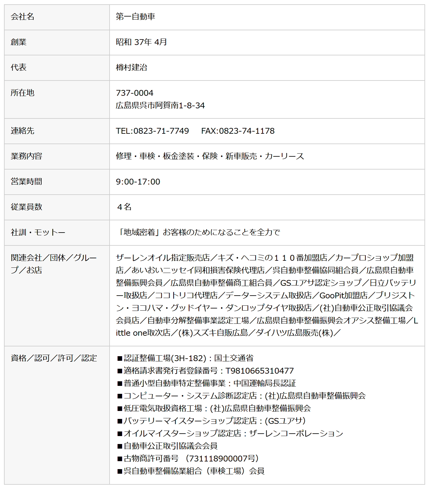 ■自動車特定整備の認証工場です。中国運輸局認証工場番号(3H-182)